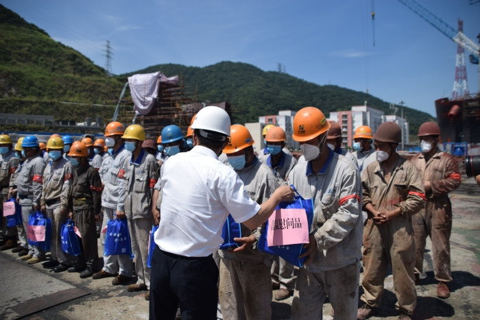 發(fā)布時(shí)間:2022-07-20 點(diǎn)擊量:23727月20日上午10時(shí)許,定海區(qū)委書記侯富光、區(qū)委辦、區(qū)總工會(huì)主要負(fù)責(zé)人等一行來到華豐船廠生產(chǎn)現(xiàn)場慰問高溫下生產(chǎn)勞作的一線員工。公司董事長鄔志祥、副總經(jīng)理周炳科等陪同慰問。