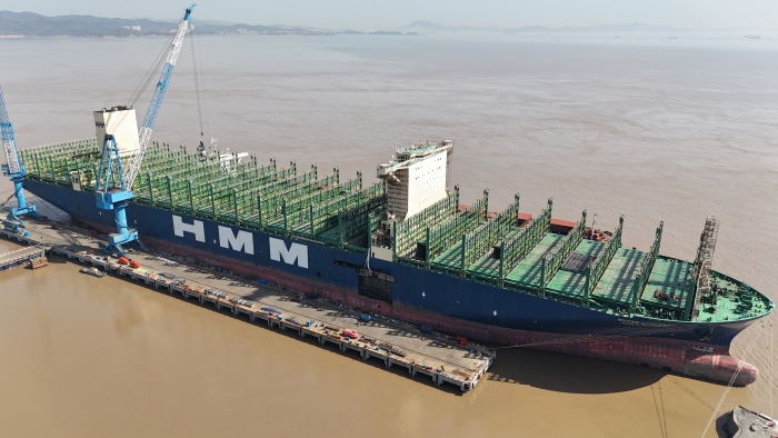 發(fā)布時(shí)間:2025-05-06 點(diǎn)擊量:1830近期,一艘由韓國(guó)現(xiàn)代重工建造并運(yùn)營(yíng)的24000 TEU(噸級(jí))超大型集裝箱船——“Petersburg輪”(總長(zhǎng)400米、型寬61.5米),緩緩駛離舟山市華豐船舶修造有限公司白泉基地,順利完成為期28天的海損及常規(guī)工程修理。