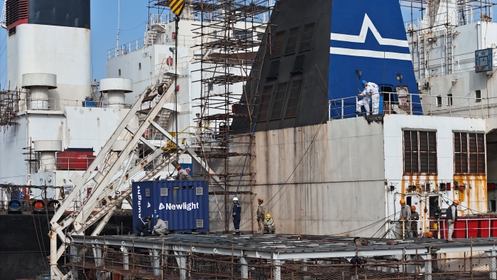 利比里亞籍 奧斯陸商人“OSLO TRADER”(189*32M)從去年12月2日入廠以來,陸續(xù)完成了常規(guī)塢修,貨倉打砂、艙蓋下地打砂,主甲板水刀,克令吊/抓斗等修理,脫碳裝置安裝,氫能源系統(tǒng)安裝。該輪于23日入塢,28日出塢。2026年1月5日至錨地調試,6日正式離廠。